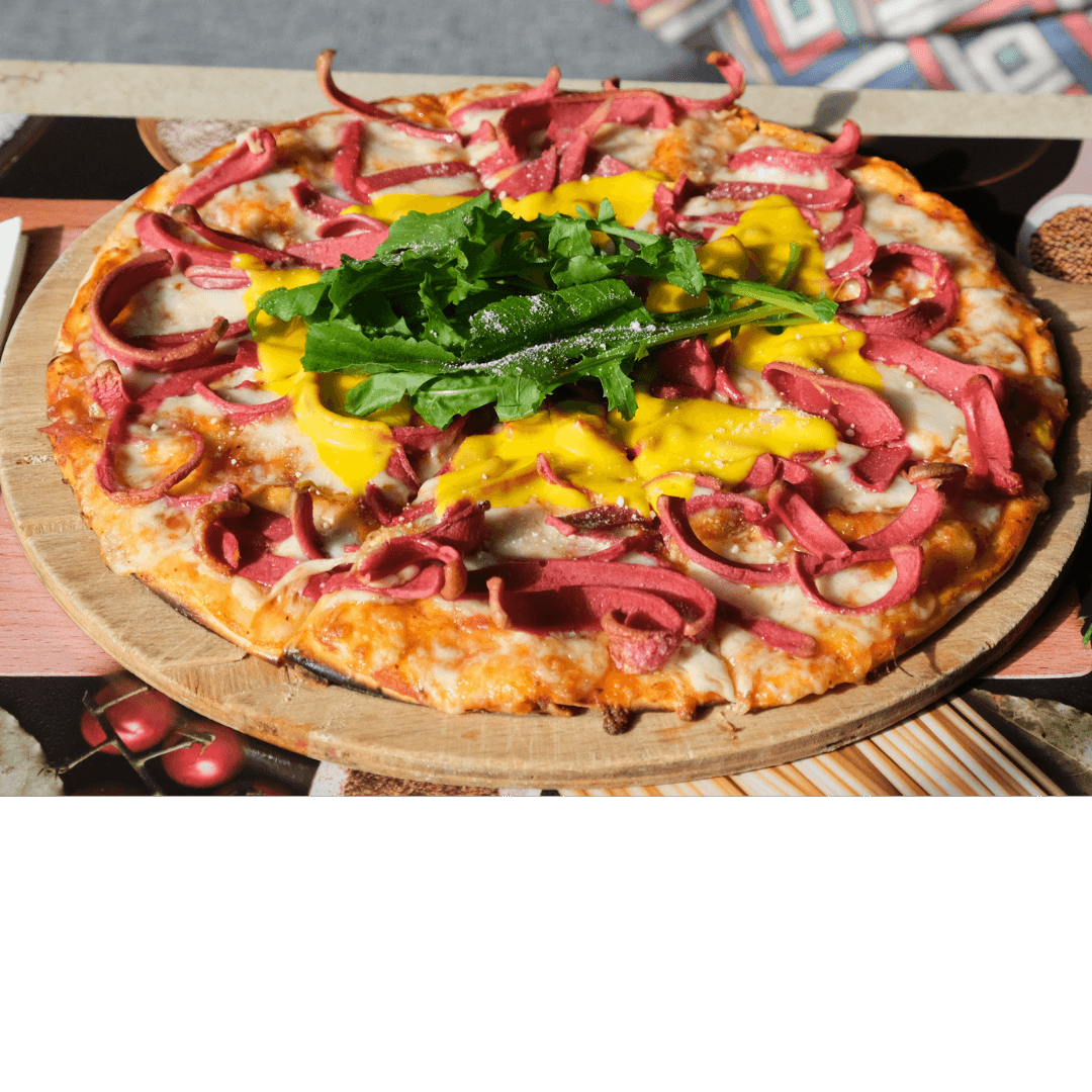 (Domates sos, mozarella peyniri, bol bol sosis, cheddar peyniri)