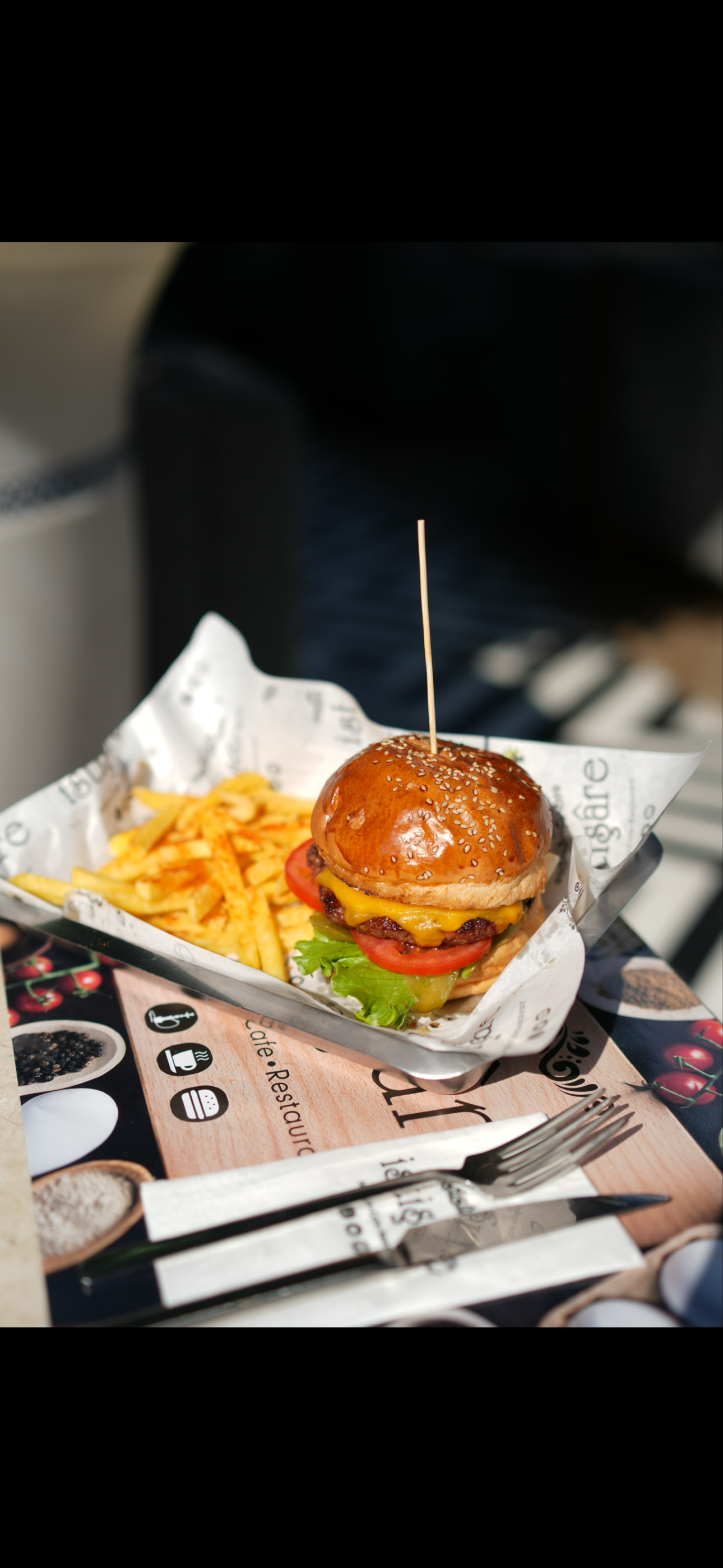 (140 g. Burger köftesi, marul, domates, turşu, patates)