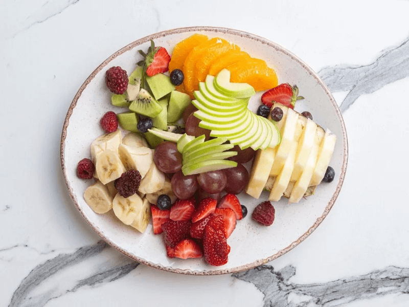 (Domates salatalık söğüş, peynir tabağı, siyah zeytin, yeşil zeytin, bal, kaymak, lor ve karadut reçeli, vişne...