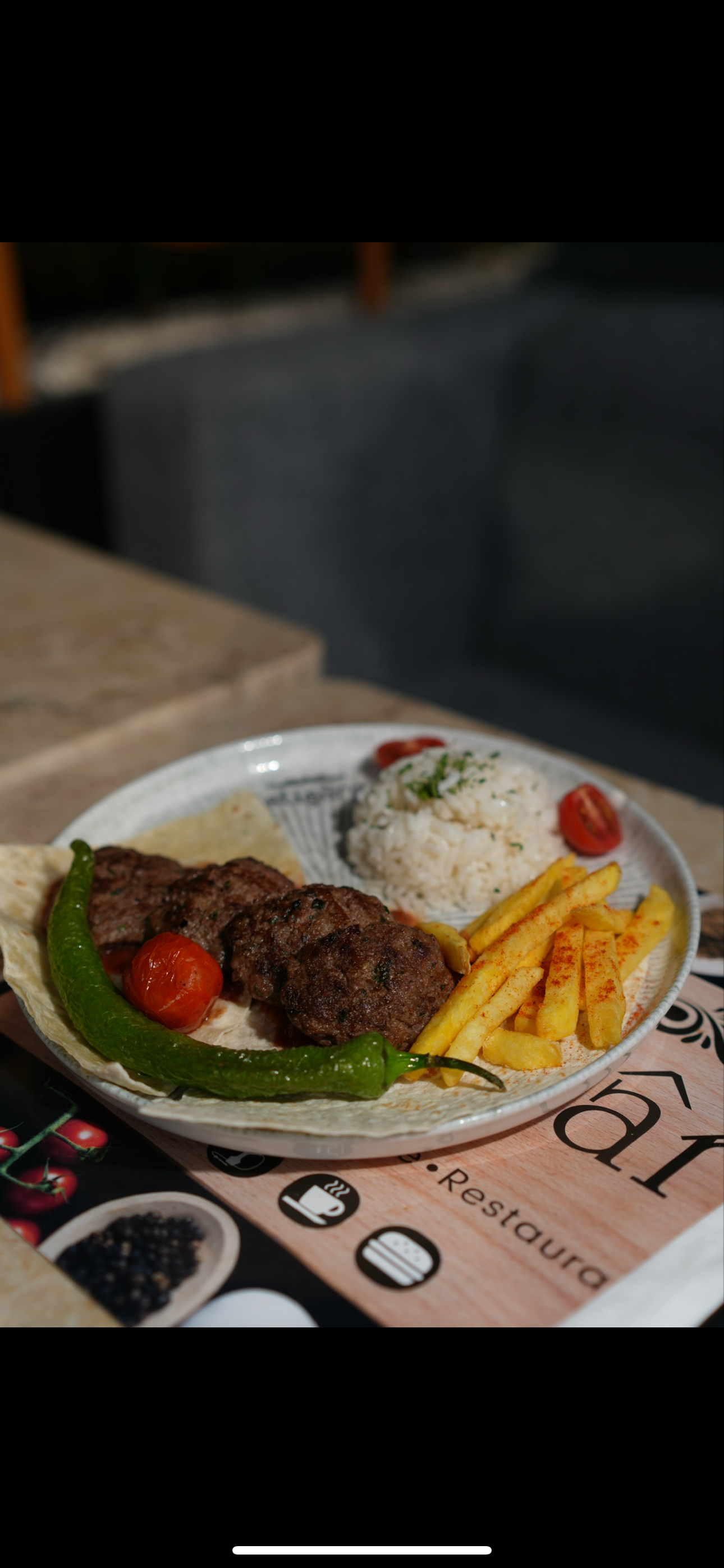 ( 3 adet köfte , 3 adet tavuk , patates , pilav , közlenmiş biber ve domates )