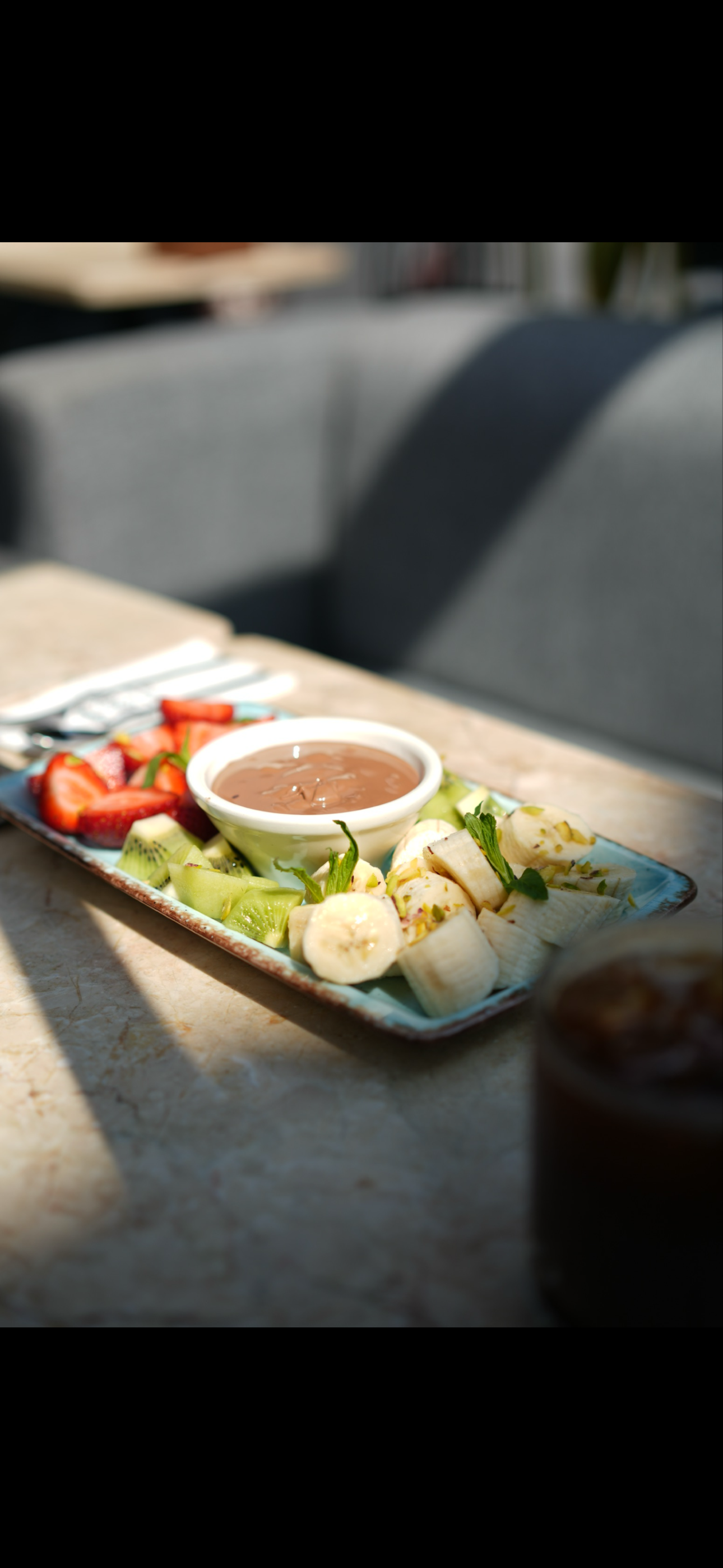 (Tavuk eti, kibrit patates, yoğurt, domates sos, közlenmiş biber, közlenmiş domates)